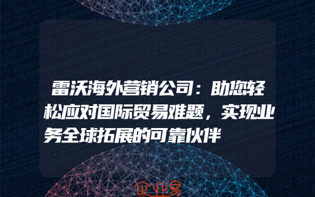 - 雷沃海外营销公司:助您轻松应对国际贸易难题,实现业务全球拓展的可靠伙伴
