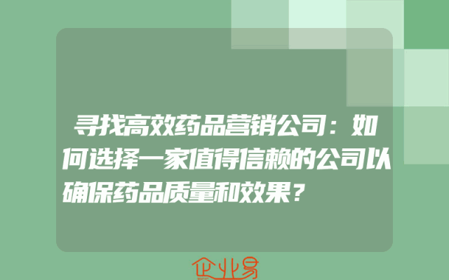 - 寻找高效药品营销公司:如何选择一家值得信赖的公司以确保药品质量和效果?