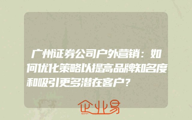 - 广州证券公司户外营销:如何优化策略以提高品牌知名度和吸引更多潜在客户?