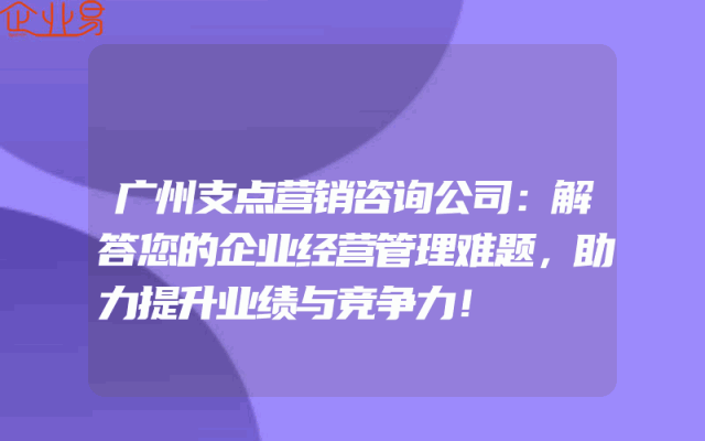 - 广州支点营销咨询公司:解答您的企业经营管理难题,助力提升业绩与竞争力!