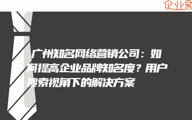 - 广州知名网络营销公司:如何提高企业品牌知名度?用户搜索视角下的解决方案