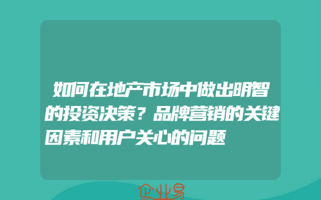 - 如何在地产市场中做出明智的投资决策?品牌营销的关键因素和用户关心的问题