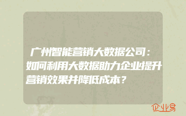 - 广州智能营销大数据公司:如何利用大数据助力企业提升营销效果并降低成本?
