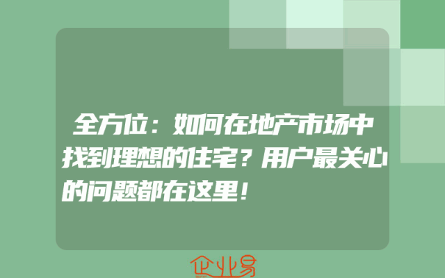 - 全方位:如何在地产市场中找到理想的住宅?用户最关心的问题都在这里!