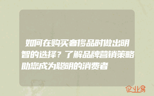 - 如何在购买奢侈品时做出明智的选择?了解品牌营销策略助您成为聪明的消费者在当今社会,奢侈品已经成为许多人追求的目标。然而,面对琳琅满目的奢侈品市场,如何做出明智的选择呢?本文将从品牌营销策略的角度为您解析,帮助您成为一位聪明的消费者。首先,我
