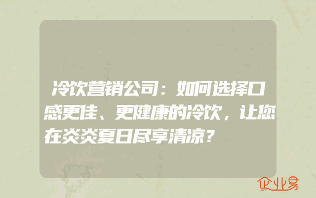- 冷饮营销公司:如何选择口感更佳、更健康的冷饮,让您在炎炎夏日尽享清凉?