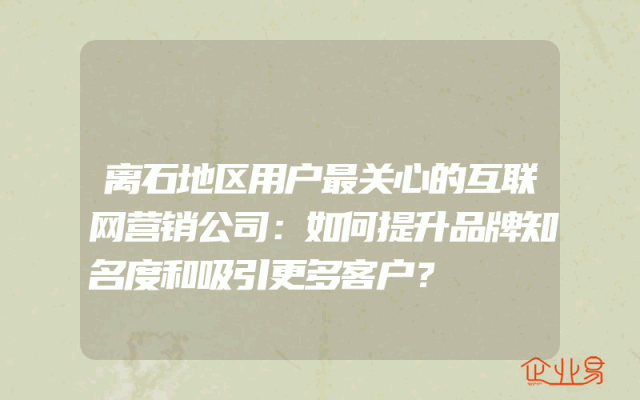 - 离石地区用户最关心的互联网营销公司:如何提升品牌知名度和吸引更多客户?