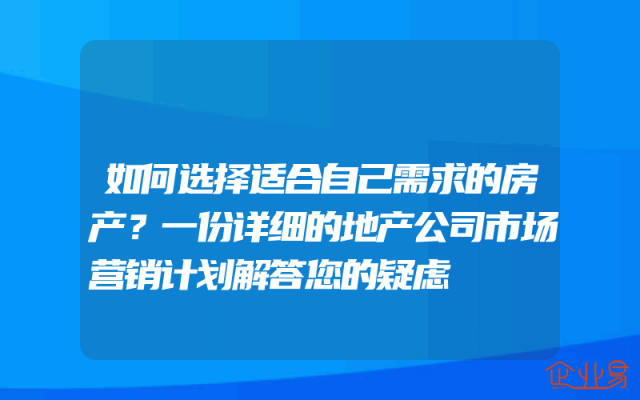 - 如何选择适合自己需求的房产?一份详细的地产公司市场营销计划解答您的疑虑