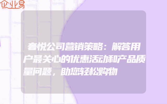 - 奢悦公司营销策略:解答用户最关心的优惠活动和产品质量问题,助您轻松购物