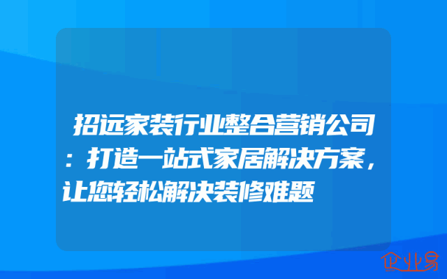 - 招远家装行业整合营销公司:打造一站式家居解决方案,让您轻松解决装修难题