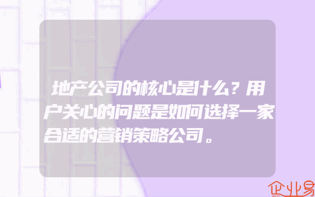 - 地产公司的核心是什么?用户关心的问题是如何选择一家合适的营销策略公司。