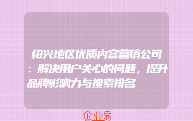 - 绍兴地区优质内容营销公司:解决用户关心的问题,提升品牌影响力与搜索排名