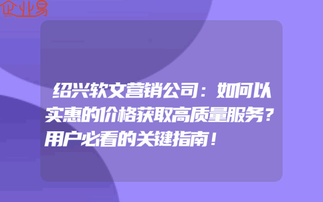- 绍兴软文营销公司:如何以实惠的价格获取高质量服务?用户必看的关键指南!