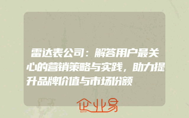 - 雷达表公司:解答用户最关心的营销策略与实践,助力提升品牌价值与市场份额