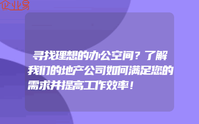 - 寻找理想的办公空间?了解我们的地产公司如何满足您的需求并提高工作效率!