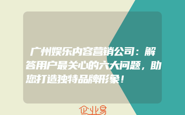 - 广州娱乐内容营销公司:解答用户最关心的六大问题,助您打造独特品牌形象!
