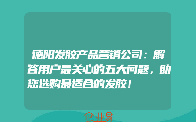 - 德阳发胶产品营销公司:解答用户最关心的五大问题,助您选购最适合的发胶!