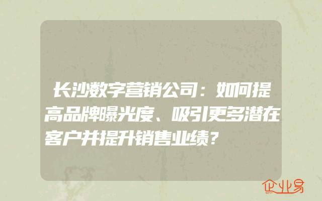 - 长沙数字营销公司:如何提高品牌曝光度、吸引更多潜在客户并提升销售业绩?