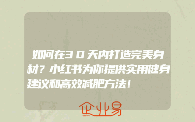 - 如何在30天内打造完美身材?小红书为你提供实用健身建议和高效减肥方法!