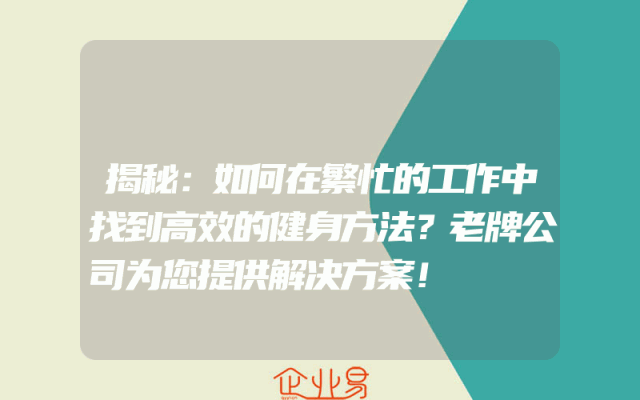 - 揭秘:如何在繁忙的工作中找到高效的健身方法?老牌公司为您提供解决方案!