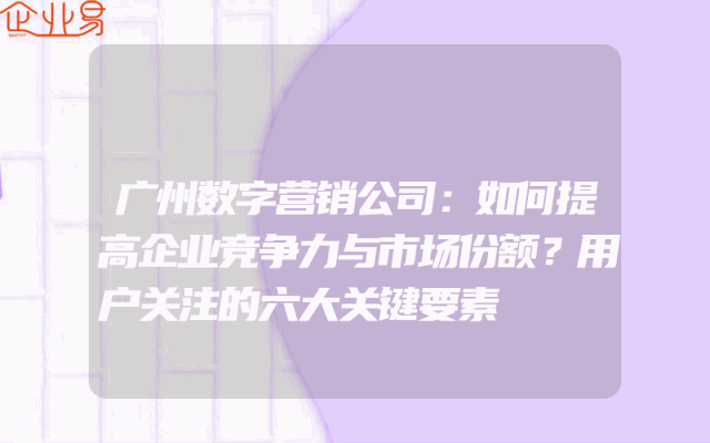 - 广州数字营销公司:如何提高企业竞争力与市场份额?用户关注的六大关键要素