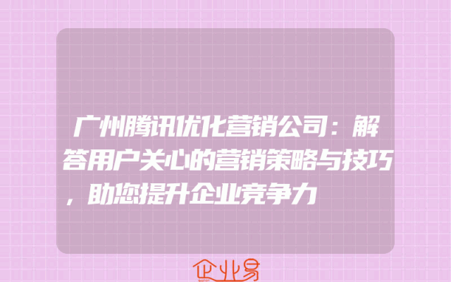 - 广州腾讯优化营销公司:解答用户关心的营销策略与技巧,助您提升企业竞争力