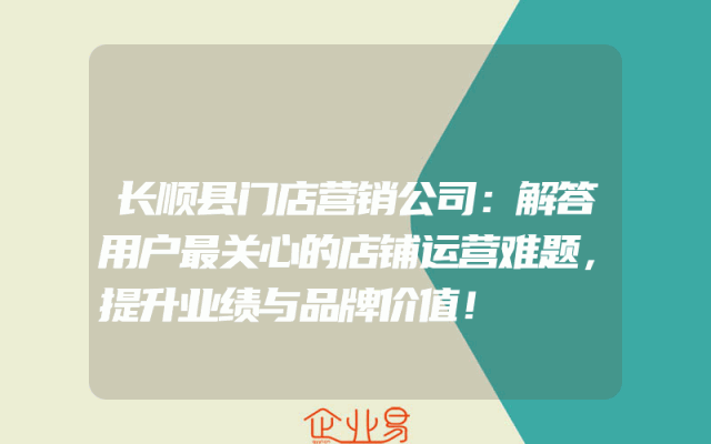 - 长顺县门店营销公司:解答用户最关心的店铺运营难题,提升业绩与品牌价值!