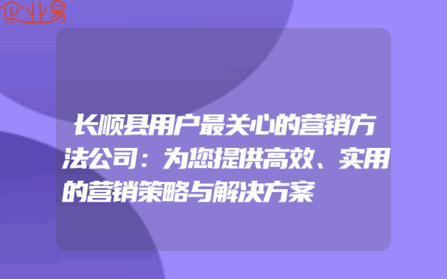 - 长顺县用户最关心的营销方法公司:为您提供高效、实用的营销策略与解决方案