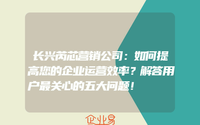 - 长兴芮芯营销公司:如何提高您的企业运营效率?解答用户最关心的五大问题!
