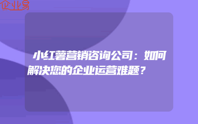 - 小红薯营销咨询公司:如何解决您的企业运营难题?