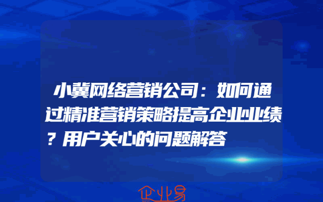- 小冀网络营销公司:如何通过精准营销策略提高企业业绩?用户关心的问题解答