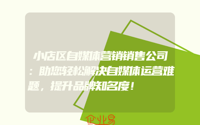 - 小店区自媒体营销销售公司:助您轻松解决自媒体运营难题,提升品牌知名度!在当今数字化时代,自媒体已经成为企业进行品牌推广和营销的重要渠道。然而,随着自媒体平台的不断涌现和竞争的加剧,许多企业在自媒体运营方面面临着诸多挑战。为了帮助企业更好地应