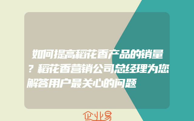 - 如何提高稻花香产品的销量?稻花香营销公司总经理为您解答用户最关心的问题