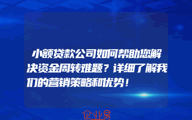 - 小额贷款公司如何帮助您解决资金周转难题?详细了解我们的营销策略和优势!