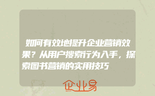 - 如何有效地提升企业营销效果?从用户搜索行为入手,探索图书营销的实用技巧