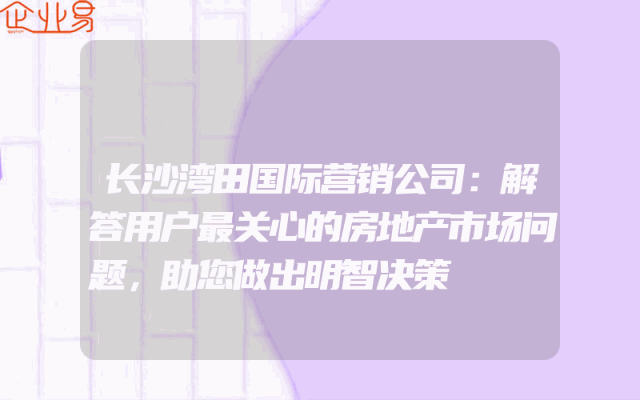 - 长沙湾田国际营销公司:解答用户最关心的房地产市场问题,助您做出明智决策