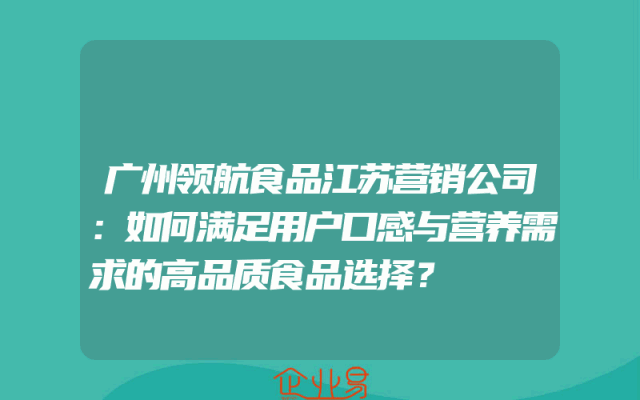 - 广州领航食品江苏营销公司:如何满足用户口感与营养需求的高品质食品选择?