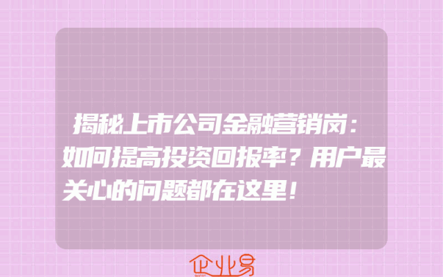 - 揭秘上市公司金融营销岗:如何提高投资回报率?用户最关心的问题都在这里!