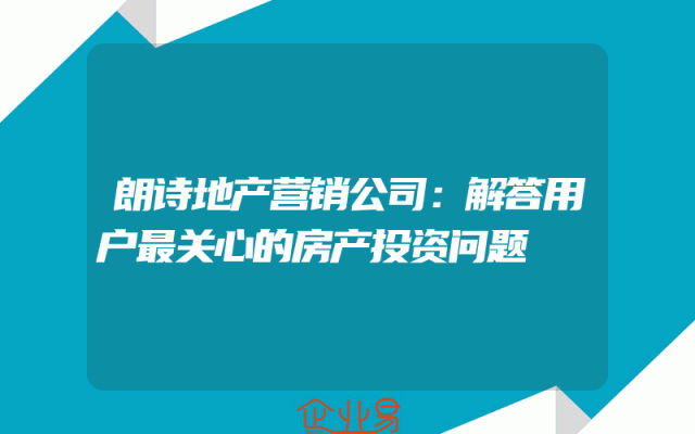 - 朗诗地产营销公司:解答用户最关心的房产投资问题