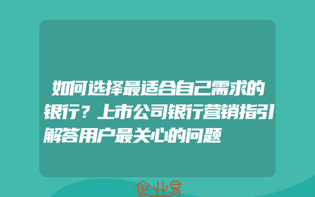 - 如何选择最适合自己需求的银行?上市公司银行营销指引解答用户最关心的问题