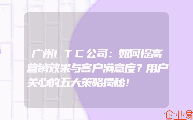 - 广州ITC公司:如何提高营销效果与客户满意度?用户关心的五大策略揭秘!