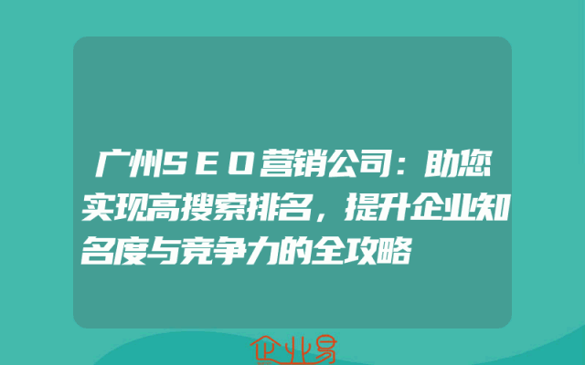- 广州SEO营销公司:助您实现高搜索排名,提升企业知名度与竞争力的全攻略在当今竞争激烈的市场环境中,企业要想在众多竞争对手中脱颖而出,提高自身的知名度和竞争力,就必须重视网络营销。而搜索引擎优化(SEO)作为网络营销的重要手段,已经成为越来越