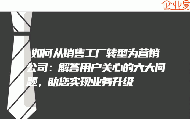 - 如何从销售工厂转型为营销公司:解答用户关心的六大问题,助您实现业务升级