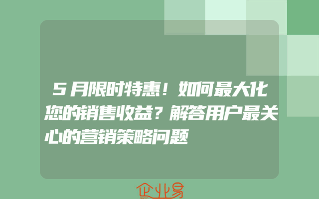 - 5月限时特惠!如何最大化您的销售收益?解答用户最关心的营销策略问题