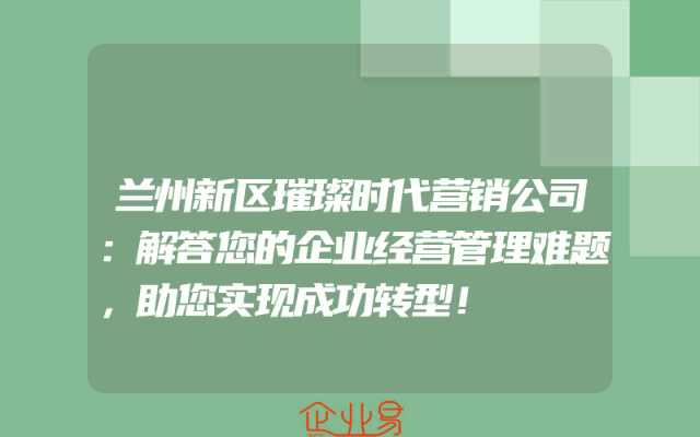 - 兰州新区璀璨时代营销公司:解答您的企业经营管理难题,助您实现成功转型!