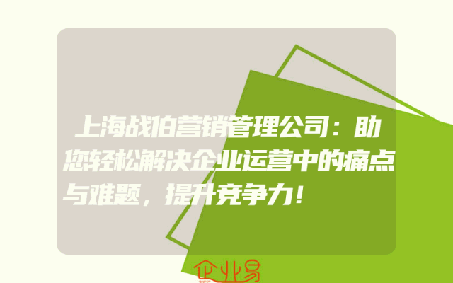 - 上海战伯营销管理公司:助您轻松解决企业运营中的痛点与难题,提升竞争力!