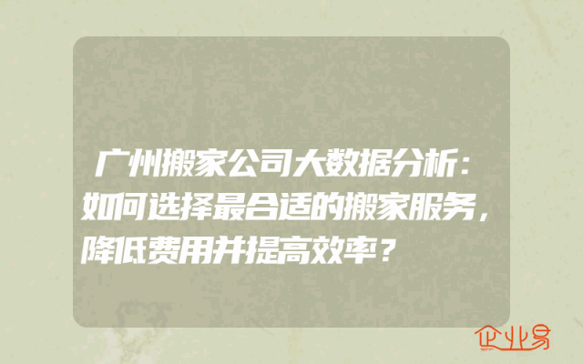 - 广州搬家公司大数据分析:如何选择最合适的搬家服务,降低费用并提高效率?
