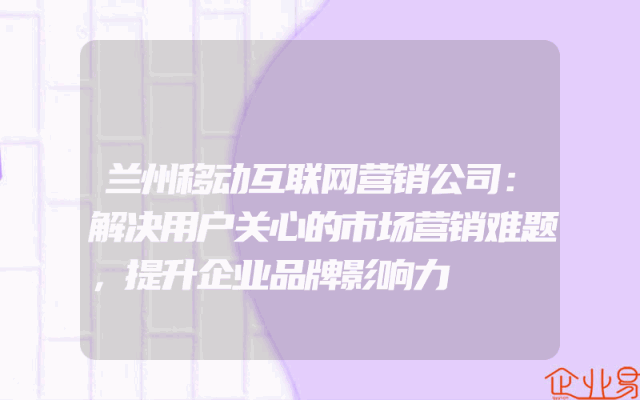 - 兰州移动互联网营销公司:解决用户关心的市场营销难题,提升企业品牌影响力