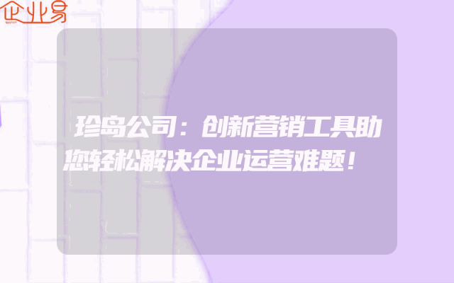 - 珍岛公司:创新营销工具助您轻松解决企业运营难题!用户关心的问题一网打尽在当今竞争激烈的商业环境中,企业需要不断寻求创新的营销工具来应对各种挑战。珍岛公司正是这样一个致力于为企业提供全方位解决方案的公司。我们的创新营销工具可以帮助您轻松解决企