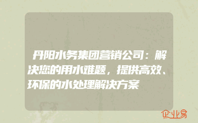 - 丹阳水务集团营销公司:解决您的用水难题,提供高效、环保的水处理解决方案